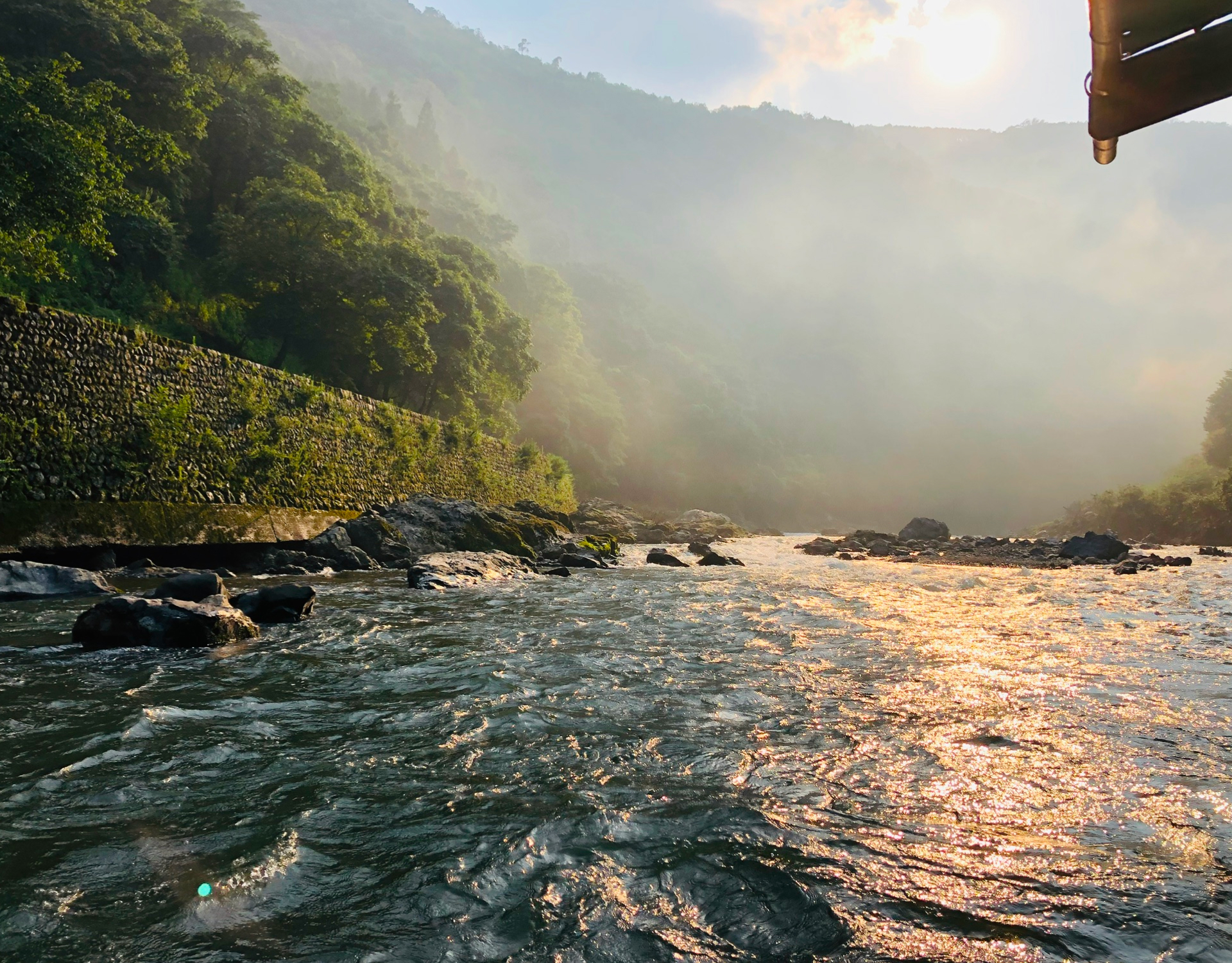 たっぷり遊んだ後は、なんとJRの電車に乗ってのんびりベースへ。車窓からさっき下ってきた川を眺めながら、冒険の余韻に浸る贅沢な時間です。